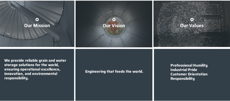 Wir bieten zuverlässige Lösungen für die Lagerung von Getreide und Wasser für die Welt und garantieren dabei operative Exzellenz, Innovation und Respekt für die Umwelt.